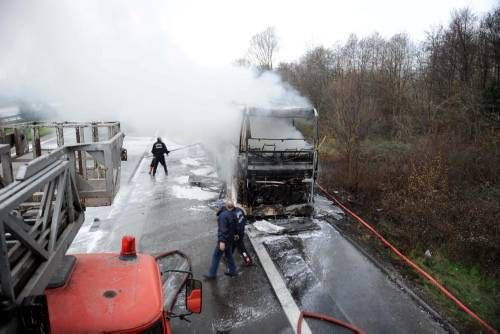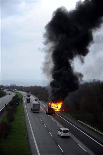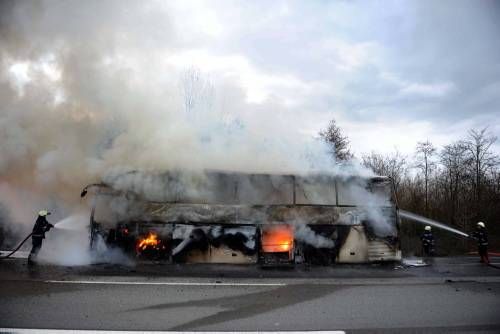 Düzce TEM otoyolu Beyköy Beldesi Calıcuma köyü mevkiinde sabah saat 08.00 sıralarında meydana gelen olayda bir yolcu otobüsü tamamen yandı.