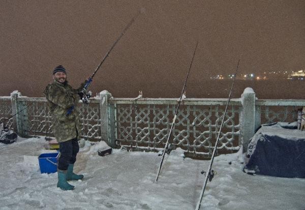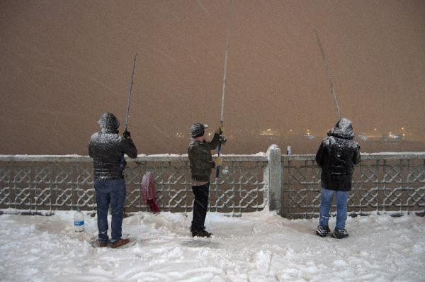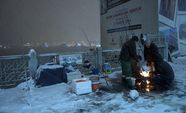 SALI gününden beri kara teslim olan İstanbul’da birçok vatandaş zor anlar yaşarken, bazı vatandaşlar ise gece saatlerinde Galata Köprüsü üzerinde balık tutmanın keyfini sürdü.
