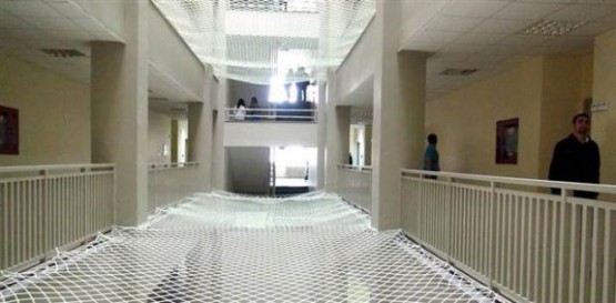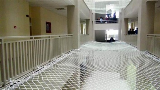 Emniyet Müdürlüğü’nün isteği üzerine Eğitim ile İktisadi ve İdari Bilimler Fakülteleri’nin bulunduğu 5 katlı binada uygulanan ağlı önlemle üst katlardan alt katlardakilerin üzerine herhangi bir şeyinin atılması ve öğrencilerin kavga sırasında merdiven boşluğundan düşme ihtimali önlenecek.
