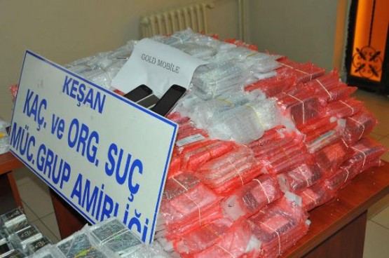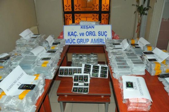 Kaçak cep telefonlarına el konulurken, sürücü Konstantinos Pistolas ifadesi alınmak üzere Keşan İlçe Emniyet Müdürlüğü’ne götürüldü.