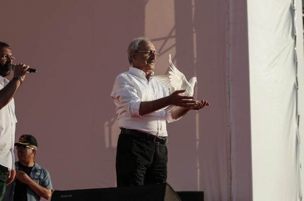 Kılıçdaroğlu 'Aadalet Mitingi'nde 'Barış Güvercini' uçurdu