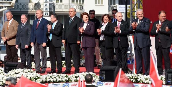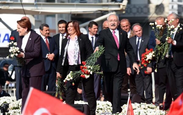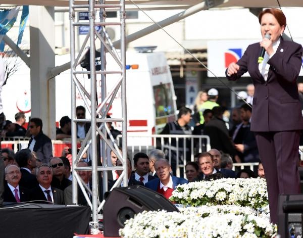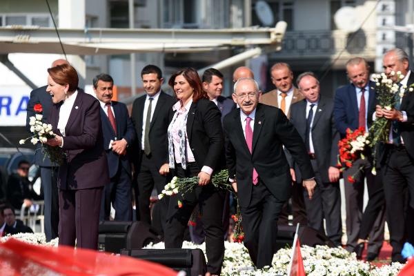 CUMHURİYET Halk Partisi (CHP) Genel Başkanı Kemal Kılıçdaroğlu ile İYİ Parti Genel Başkanı Meral Akşener, 31 Mart yerel seçimleri öncesinde, Millet İttifakı'nın ikinci ortak mitingi Aydın'da yaptı. Alandakileri birlikte selamlayan iki lider, ittifakın Aydın Büyükşehir Belediye Başkan adayı CHP'li Özlem Çerçioğlu ve ilçe belediye başkan adaylarına destek istedi. İki genel başkan da konuşmalarında Cumhurbaşkanı Recep Tayyip Erdoğan'ın kendilerine yönelik eleştirilerine yanıt verdi.