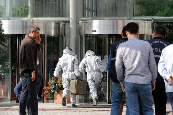 . AFAD ekipleri özel elbise ve botlarını giyip yanlarına gaz maskeleri ve teçhizatlarını alarak binaya girdi. Ekipler inceleme başlattı. Bu arada bir konsolosluk yetkilisi de binaya geldi.