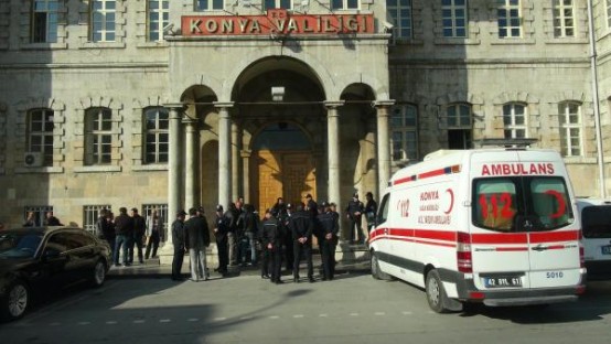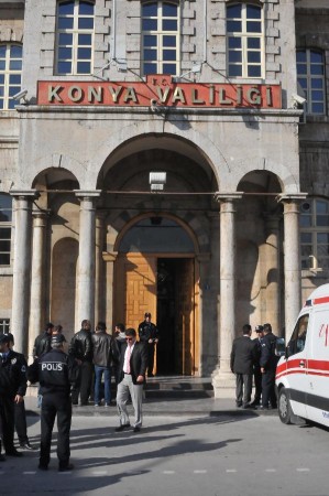 Konya'da işsiz 36 yaşındaki M.B., sabah saatlerinde valilik binasında boğazına dayadığı pompalı tüfek ile intihar girişiminde bulundu. 150 bin lira borcu olduğunu ve iş istediğini söyleyen M.B., polisin yaklaşık yarım saat süren çabasıyla intihardan vazgeçirildi. Olay, saat 09.00 sıralarında Konya Valisi Muammer Erol makamında iken, valilik binasında meydana geldi. Elinde pompalı tüfek ile valilik binasına gelen M.B., silahı boğazına dayayarak kapıdaki polislerin yanına geldi. Bir elinde de tabanca olan ve diğer elindeki tüfeği boğazından indirmeden içeriye girerek koridorda duvara sırtını dayayan M.K., iş istediğini söyledi. 150 bin lira borcu olduğunu söyleyen M.B., polisler tarafından sakinleştirilmek istendi. Polis olay yerinde geniş çaplı güvenlik önlemi alırken, valilik binası giriş çıkışlara kapatıldı. Valiliğe gelen Asayiş Şube Müdürü Murat Ay tarafından ikna edilen M.B.'nin elindeki tüfek alındı, tabancanın ise kurusıkı olduğu belirlendi. Gözaltına alınan M.B., valilikten çıkarılırken basın mensuplarının neden intihar girişiminde bulunduğunu sorması üzerine, ''Çaresizlikten. 15 senedir borç ödüyorum'' cevabını verdi. M.B., ifade için polis merkezine götürüldü. Olayla ilgili soruşturma sürüyor.