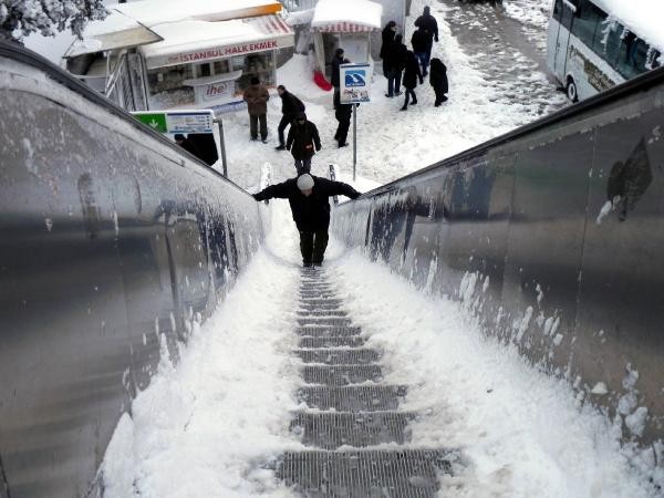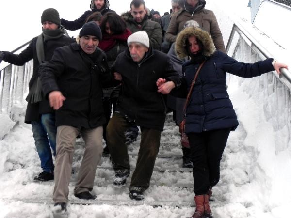 Belediyeler yeterince tuzlama ve yol açma çalışması yapmaları nedeniyle eleştirilirken, metrobüs için yaptırılan üstgeçitlerin merdivenleri de temizlenmeyince bunları kullananlar oldukça zorlandı. Yürüyen merdivenlerin de büyük bölümünün çalışmadığı üstgeçitleri kullanmak isteyen yaşlılar ne yapacaklarını şaşırdı.
