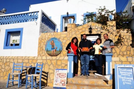 Atalarının, Muğla ve İzmir yörelerinin kültürleriyle yıllarca önce Leros’a geldiklerini belirten Anna Karpathaki, mekanında, onların getirdikleri halı tezgahı, semer, tahta yalaklar, kirmanlar, halı ve kilimler, eski masa örtüleri, perdeler ve otantik eşyalarla süslediğini anlattı. Konuklarına günlük yaptığı kekler, börekler, kaşık tatlısı, acı badem, reçeller, bal ve dünyaca ünlü Leros Kahvaltısı’nın yanı sıra şarap, likör ve zeytinyağı da ikram ettiğini belirten Anna Karpathaki,
