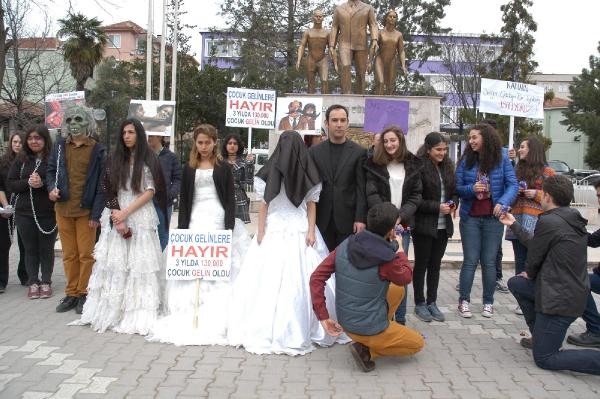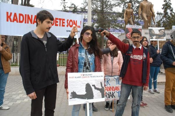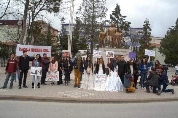 SAMSUN'un Bafra İlçesi'ndeki Altınkaya Anadolu Lisesi öğrencileri, Cumhuriyet Meydanı Atatürk Anıtı önünde sokak tiyatrosu gösterisi düzenleyerek, kadına yönelik şiddeti protesto etti.