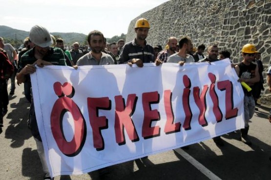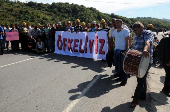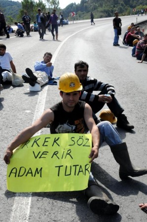 Maden işçilerinden bazıları iş kıyafetleri ile yürüyüşe katıldı. 'Öfkeliyiz' yazılı pankartı açıp, 'TTK-HEMA sorun ne?', 'İşçi atılmasına son', 'İşsizlikte fıtrat mı', 'Çözmek mi zor, kazmak mı', 'Şantaj malzemesi değil madenciyiz' yazılı dövizler taşıyan madencilere yoldan geçen sürücüler de klakson çalarak destek verdi.