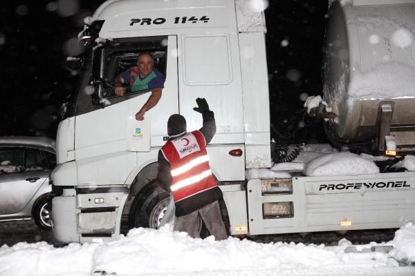 BALIKESİR'de kapanan, Balıkesir-İzmir Karayolu'nda yüzlerce vatandaş, yeni yıla, yolda mahsur kalarak araçlarının içinde girdi. Zor durumda kalanların imdadına Balıkesir Kızılay Şubesi yetişti. Şube Başkanı Hüseyin Gündoğan ve ekibi ile birlikte Balıkesir Büyükşehir Belediyesi zabıtaları, yolda mahsur kalan vatandaşlara kumanya dağıttı. İki gündür kapalı olan yol gece saatlerinde ulaşıma açıldı.