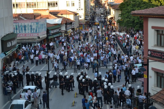 DİYARBAKIR Lice’deki olaylarda PKK sempatizanı bir grup göstericinin 2. Hava Kuvveti Komutanlığı’ndaki Türk bayrağını indirmesini protesto etmek isteyen Malatya'da bir grup ülkücü, ellerindeki Türk bayraklarıyla ve sloganlarla BDP ve HDP’nin bulunduğu binaya yürümek isteyince polis gaz bombası ile müdahale etti.