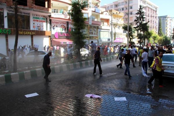 MARDİN'in Kızıltepe İlçesi'nde, Ankara'da 97 kişinin öldüğü bombalı saldırıyı protesto etmek isteyen sivil toplum örgütlerine polisin izin vermemesi üzerine olaylar çıktı. Polisin gaz bombaları ve tazyikli su ile müdahale ettiği göstericiler, taş atarak karşılık verdi.