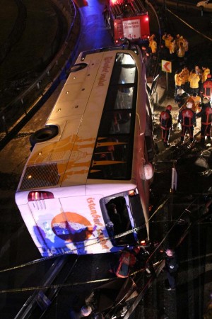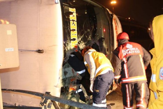 MASLAK TEM Bağlantı yolunda kontrolden çıkan bir yolcu otobüsü sürücüsünün direksiyon hakimiyetini kaybetmesi sonucunda yola devrildi. Kaza ilk belirlemelere göre 2 kişi hayatını kaybetti, çok sayıda kişi de yaralandı.