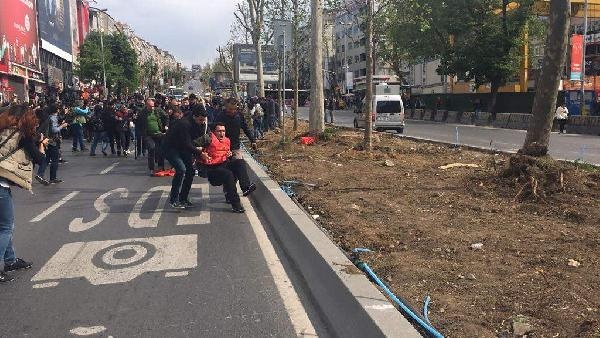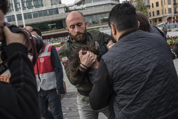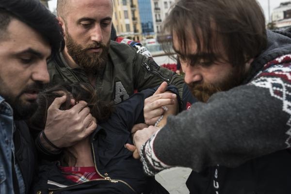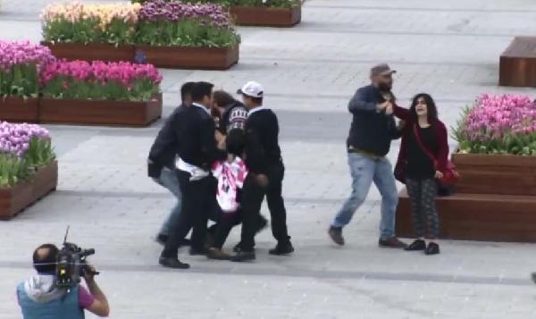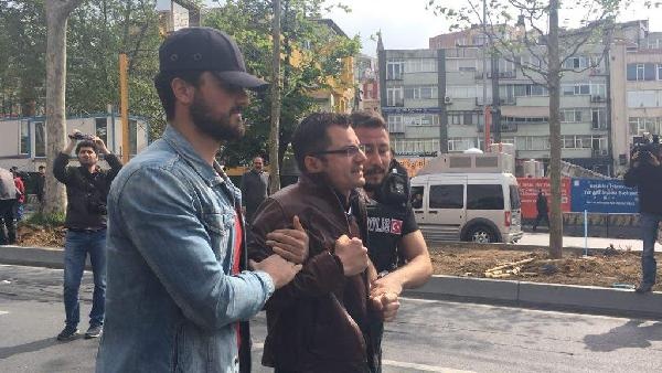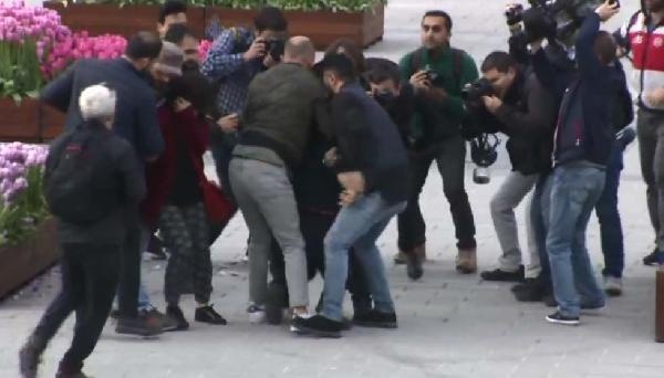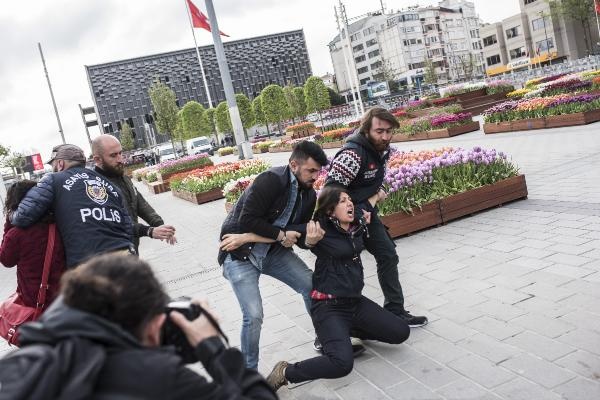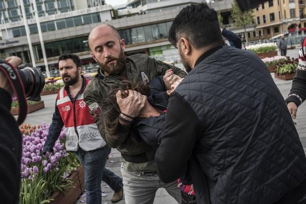 Beşiktaş Kartal heykeli önünde toplanan bir grup, 1 Mayıs ile ilgili pankart açıp sloganlar attı. Gruba polis müdahale etti. Yaka paça gözaltına alınan grup üyeleri polis minibüsüne götürüldü.