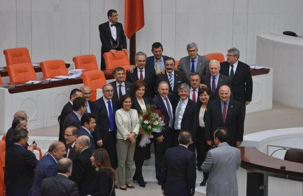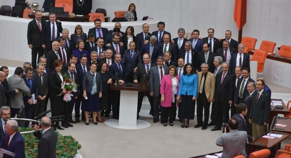 Birleşimin kapanmasının ardından milletvekilleri hatıra fotoğrafı çektirdi ve gazetecilere el salladı.