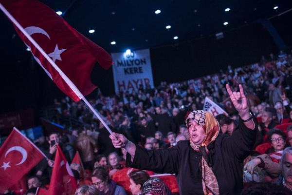 -PARTİSİNDEN ihraç edilen MHP Genel Başkan adayı Meral Akşener, Bostancı Gösteri Merkezi'nde düzenlenen "Hayır" etkinliğine katıldı. Kadınların ağırlıklı olduğu salona giren Meral Akşener, "Başbakan Meral "sloganı ile karşılandı.