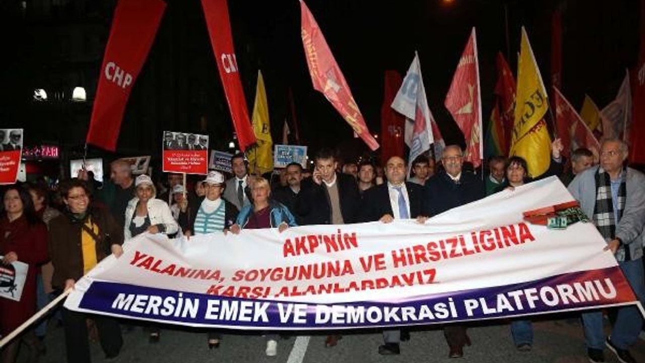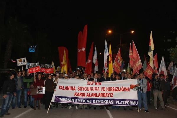 MERSİN Emek ve Demokrasi Platformu çağrısı ile toplanan eylemciler, 17 Aralık soruşturması yıl dönümünde hükümet protesto edildi.