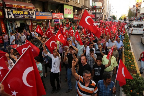 MERSİN Ülkü Ocakları'nın düzenlediği 'Bayrağa Saygı Yürüyüşü'ne katılan ülkücüler ve vatandaşlar, Diyarbakır'da yaşanan bayrak indirilmesi olayına tepki gösterdi.
