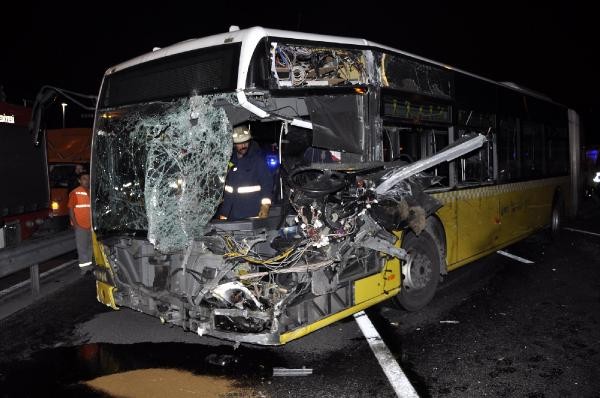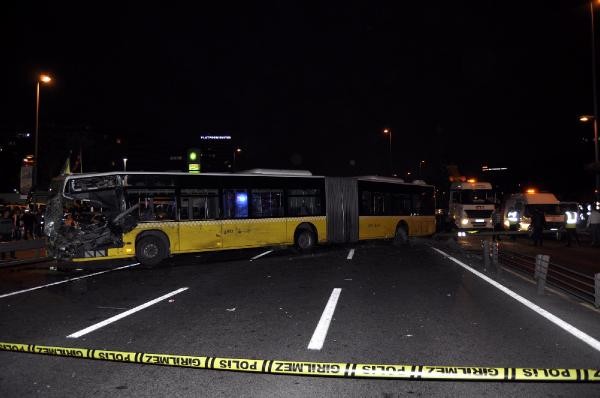 E-5 Karayolu'nun Merter kesiminde, kontrolden çıkarak metrobüs yoluna giren bir servis minibüsü, Avcılar yönüne giden metrobüsle kafa kafaya çarpıştı. Kazada her iki aracın sürücüsü ağır yaralanırken, metrobüsteki yolculardan 12'si de hafif yaralandı.