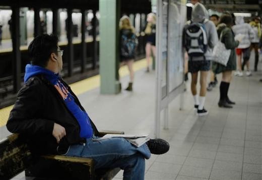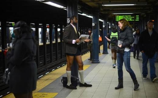 ABD'de düzenlediği ilginç eylemlerle tanınan “Improve Everywhere” grubu tarafından bu yıl 14'üncüsü düzenlenen “Pantolonsuz Metro Yolculuğu” etkinliği, New York'ta yoğun ilgi gördü.