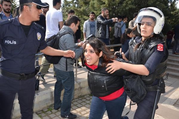 MERSİN Üniversitesi'nde (MEÜ) 'İş Dünyası Üniversiteli Gençlerle Buluşuyor' konulu konferansın yapılmasına engel olmaya çalışan bir grup öğrenciye polis müdahale etti. Aralarında kız öğrencilerin de bulunduğu 9 kişi yaka paça gözaltına alındı.