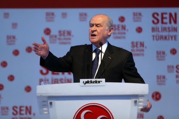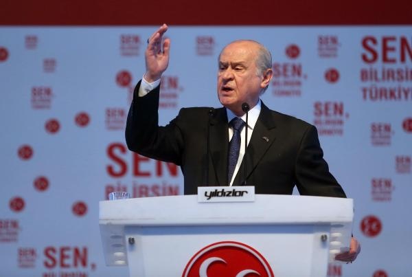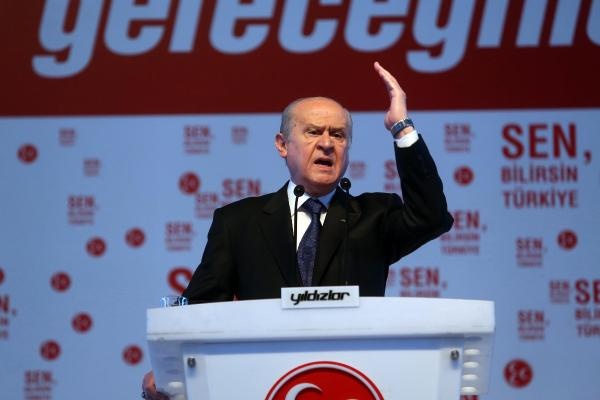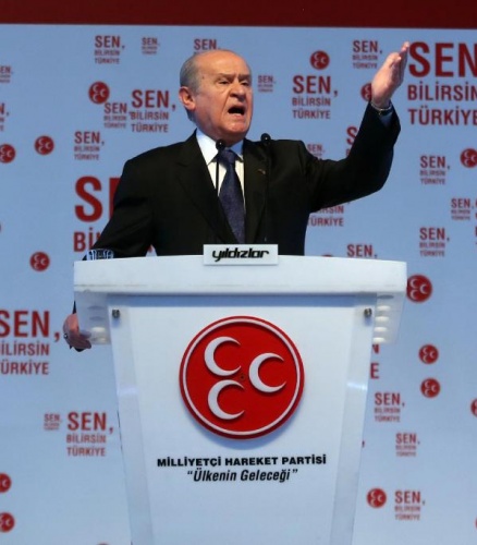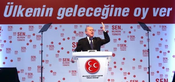 MHP Genel Başkanı Devlet Bahçeli, partisinin 1 Kasım seçimlerine yönelik seçim beyannamesini açıklarken "MHP'nin amacı tek başına iktidardır. Eğer algı operasyonları, anket oyunları, ahlaki olmayan yöntemlerle 1 Kasım seçimlerinin üzerine ambargo koymaya çabalayanların arzuladıkları gibi bir sonuç alınırsa; yani genel olarak medyada servis edildiği üzere, 1 Kasım'ın aşağı yukarı 7 Haziran'ın tekrarı olması halinde, hiç kimse kaygılanmasın. Böyle bir durum karşısında MHP, PKK uzantısı HDP dışındaki her partiyle, 4 ilkesi saklı kalmak kaydıyla, iktidar kurmaya ve iktidar olmaya vardır Bunu da şimdiden ilan etmektedir. Türkiye'nin üst üste 1 Kasım'lar yaşamaması için biz sorumluluğa varız. 1 Kasım seçim neticesinin kriz ve kaosa davetiye çıkarmaması için, 4 ilkemizi kabul eden HDP dışındaki her partiyle, diğer bir seçenek olarak, seçim beyannamelerimizi bir hükümet protokolü haline dönüştürmeye peşinen hazırız, bunu da muhataplarımıza bildiriyoruz" dedi.