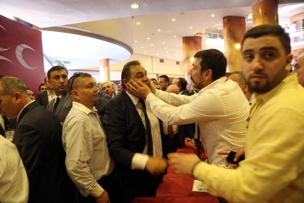 MHP'de tüzük kurultayının yapılacağı salona delege olmadığı için izin vermeyen polisle partililer arasında arbede yaşandı. MHP'li muhaliflerin tüzük kurultayındaki tüm önergeleri oy çokluğuyla kabul edildi