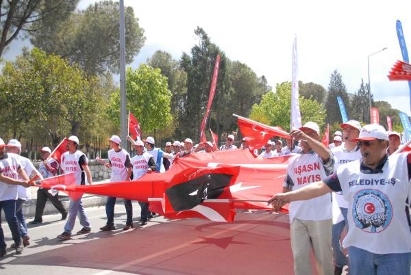 CHP Muğla Milletvekili Ömer Süha Aldan, CHP'li Muğla Büyükşehir Belediye Başkanı Osman Gürün, CHP'li Menteşe Belediye Başkanı Bahattin Gümüş ve birçok ilçe belediye başkanının katıldığı yürüyüşte, "Gün gelecek, devran dönecek, AKP halka hesap verecek", "Direne direne kazanacağız", "Yaşasın 1 Mayıs", "Susma sustukça sıra sana gelecek", "AKP'nin imamı, kaça sattın vatanı" sloganları atıldı. Kutlamalarda en fazla ilgiyi 'Çocuk İşçiliğine Son' dövizi taşıyarak yürüyen minikler çekti.