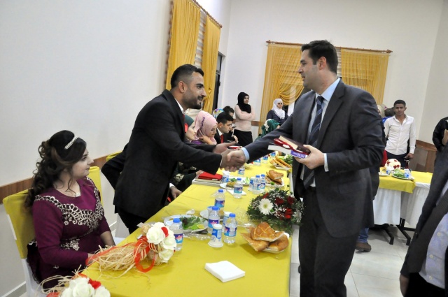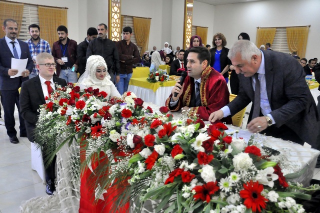 Bismil Belediye Başkanlığı tarafından bu akşam saat 19.00'da ilçedeki bir düğün salonunda toplu nikah töreni düzendi. 30 çiftin resmi nikahının kıyıldığı törene 500 dolayında davetli katıldı. Törende ilk olarak Bismil Belediye Başkan Vekili Turgay Gülen, Ezgi ve Mesut Göknar çiftinin nikahını kıydı. Çifte mutluluklar dileyen Başkan Vekili Gülenç, evlilik cüzdanını da gelin Ezgi Göknar'a verdi.