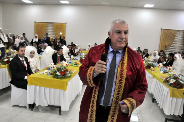 DIYARBAKIR'IN BISMIL ILCE BELEDIYESI TARAFINDAN DUZENLENEN TOPLU NIKAH TORENINDE ILCE MUFTUSU AHMET DURMUS ILK KEZ RESMI NIKAH KIYDI. ZAMAN ZAMAN YANLIZ YAPAN MUFTU DURMUS'U NIKAH MEMURU RIFAT AKAN DUZELTTI.