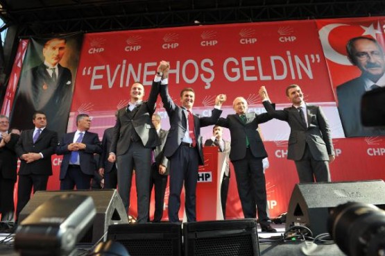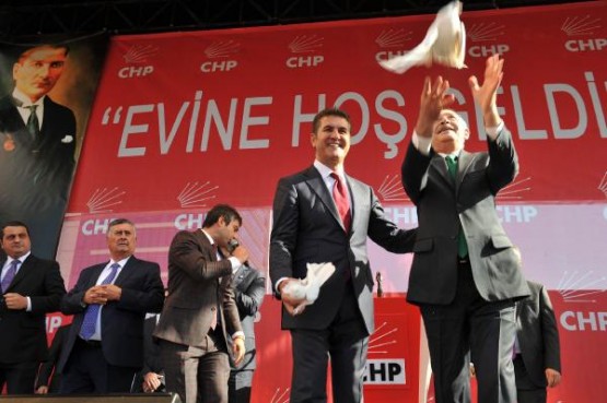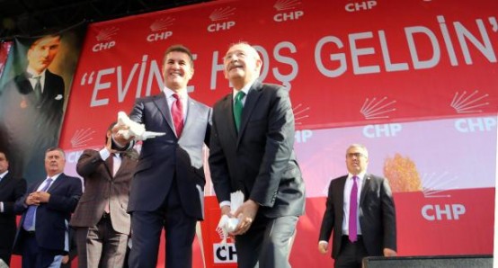 CHP Genel Başkanı Kemal Kılıçdaroğlu, parti genel merkezinde Şişli Belediye Başkanı Mustafa Sarıgül'e CHP rozeti taktı ve üye kimlik kartını verdi.