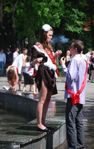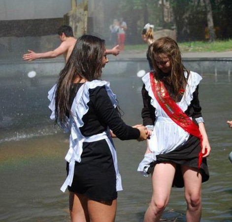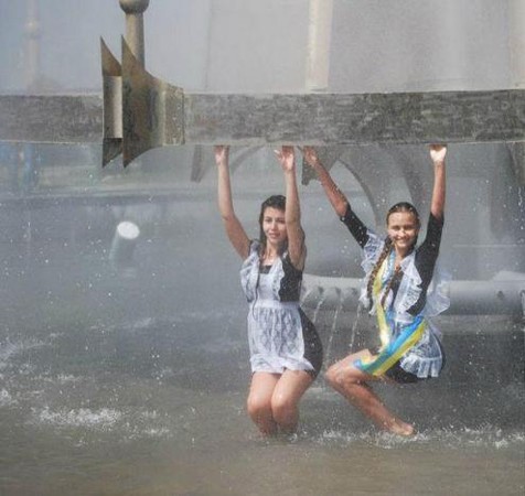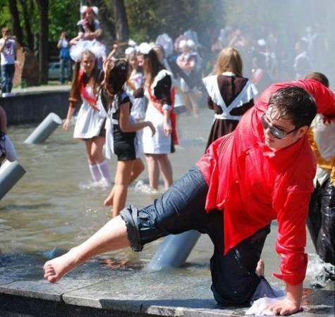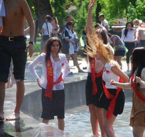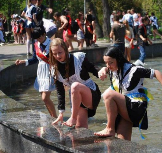 Ukrayna'da son ders zilinin çalmasıyla geleneksel olarak meydanlarda yürüyen öğrenciler şehrin süs havuzlarını eğlence alanına çevirdiler. Alkolün de etkisiyle ortaya geçtiğimiz yıl olduğu gibi ilginç görüntüler çıktı.