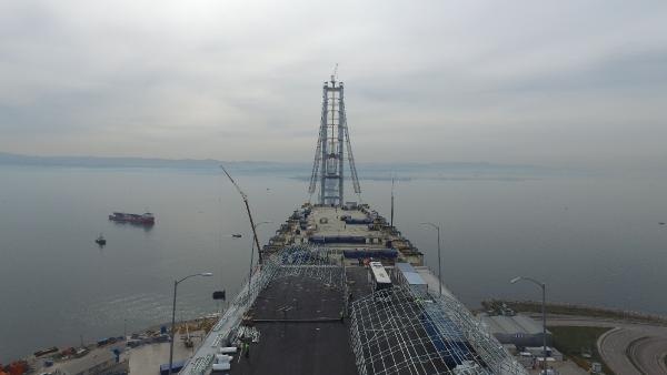 Ana kablonun tamamlanmasının ardından iki yakayı birleştiren 113 tabliyeden ilkinin montajı geçtiğimiz ocak ayı başında yapıldı. Hızla ilerleyen tabliye montajı çalışmalarında iki yakayı birleştiren son tabliye ise 21 Nisan 2016 tarihinde Cumhurbaşkanı Recep Tayyip Erdoğan’ın katıldığı törenle yerine yerleştirildi. İki yakayı birleştiren tabliyelerin tamamlanmasının ardından korozyona karşı özel boyalarla kaplanan köprü üzerinde Haziran ayında başlanan asfaltlama çalışması geçtiğimiz günlerde tamamlandı.