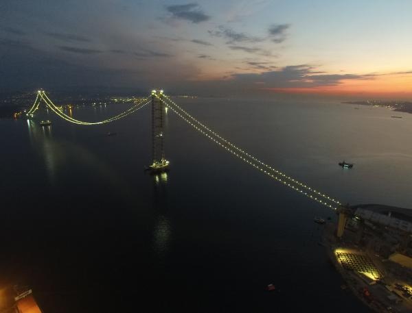 STANBUL-İzmir arasındaki yolun 3,5 saate inmesini sağlayacak Gebze-Orhangazi-İzmir otoyol projesinin en önemli ayağı olan ve 'Osmangazi " adı verilen İzmit Körfez Geçiş köprüsü bugün açılıyor. 2015 Mart ayında kılavuz kablolardan biri kopmasıyla bitiş tarihinde gecikme yaşanan, köprü yaklaşık 39 ay süren bir çalışmayla tamamlandı.