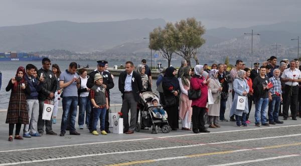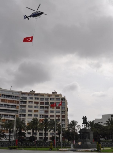 Cumhuriyet Meydanı'nda saat 09.30'da başlayan törene, İzmir Valisi Mustafa Toprak, Büyükşehir Belediyesi Başkan vekili Sırrı Aydoğan, İl Emniyet Müdürü Celal Uzunkaya, bazı İzmir milletvekilleri, siyasi parti temsilcileri ve vatandaşlar katıldı. Atatürk Anıtı'na çelenk bırakılmasının ardından saygı duruşunda bulunuldu,