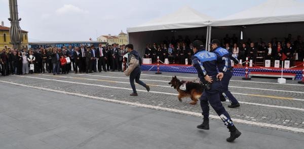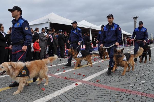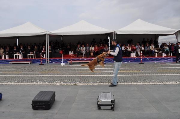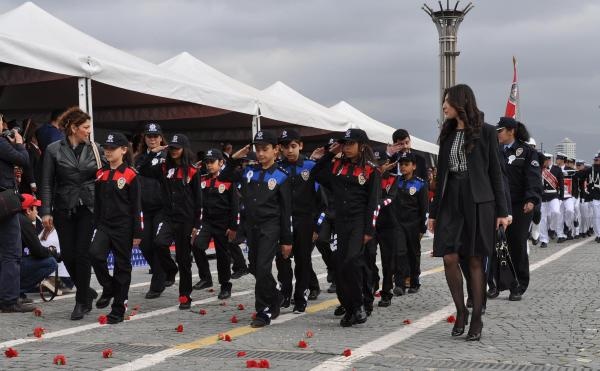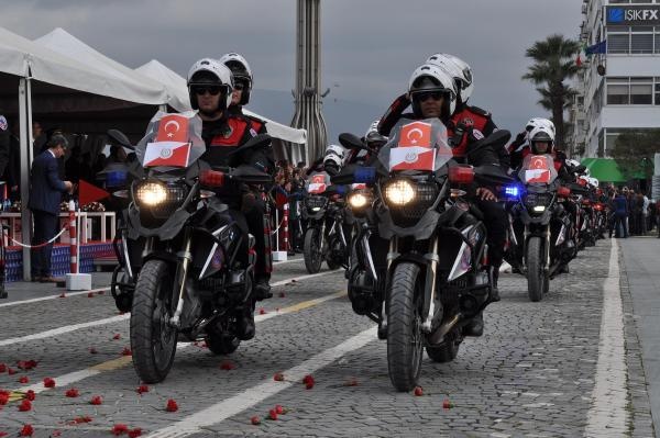 Tören kapsamında, özel eğitimli narkotik ve asayiş köpekleri birer gösteri yaptı. Köpeklerin gösterileri büyük alkış aldı. Terörle mücadele kapsamında, doğru illerine gönderilen Özel Harekat polisleri geçit törenine katılamadı. Polislerin geçişi sırasında İzmirliler karanfil attı. Bu yıl her zamankinden daha daha yoğun güvenlik önlemi dikkat çekti. Polisin yürüyeceği 1. Kordon Gümrük'ten Gündoğdu'ya kadar bariyerlerle kapatıldı. Polis helikopterinin Türk bayrağı ile yaptığı geçişin ardından tören sona erdi.