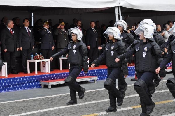 TÜRK Polis Teşkilatı'nın 171. kuruluş yıl dönümü, İzmir Cumhuriyet Meydanı'nda düzenlenen törenle kutlandı. Terörle mücadele kapsamında, doğru illerine gönderilen Özel Harekat polisleri geçit törenine katılamadı. Törende konuşan İl Emniyet Müdürü Celal Uzunkaya, "Son aylarda ülkemizin bir bölgesinde yürütülen bölücü terörü ve terörün kalıntılarını tüm izleriyle birlikte kazıyıp temizleme operasyonları kapsamında verdiğimiz şehitler nedeniyle bu yıl biraz daha buruk ancak çok daha fazla onur beratlı bir kutlama yapıyoruz" dedi.