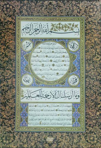 kare, yıldız gibi geometrik şekillerin ya da Kadem-i Saadet, Süleyman Mührü, Zülfikâr, lale gibi anlamlı motiflerin içine yazılmış