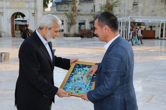 Başkan, Ahmet Hasan’a Eyüp Sultan’ı simgeleyen bir de hediye verdi.