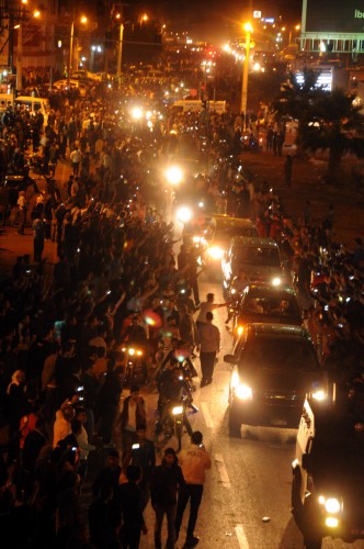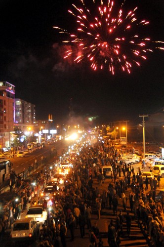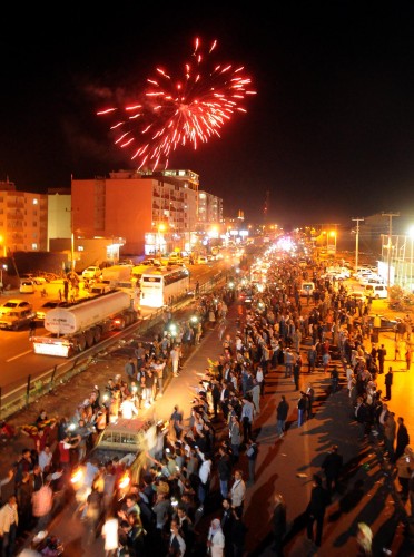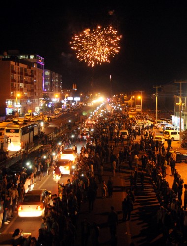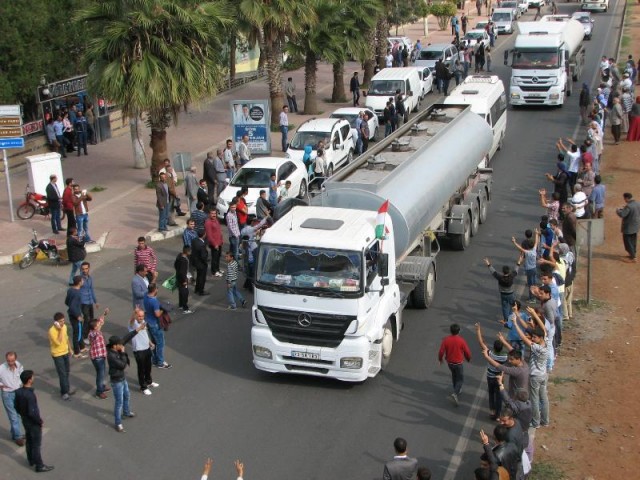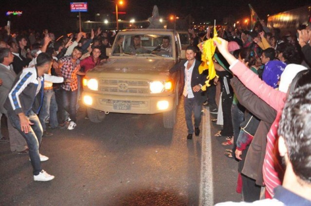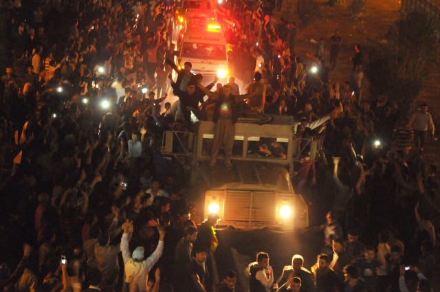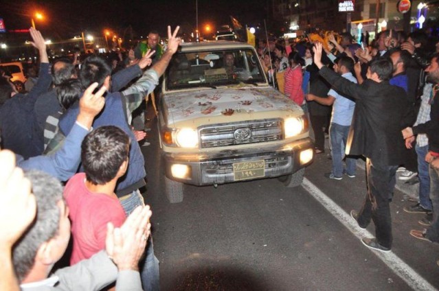 İki ilçe arasındaki 75 kilometrelik mesafeyi 4.5 saatte kat eden ve yerleşim merkezlerinde destek gösterileriyle karşılanan grup, Viranşehir girişinde toplanan kalabalık tarafından havai fişeklerle karşılandı. Peşmerge konvoyu, bekleme yapmadan Şanlıurfa'ya gitti.