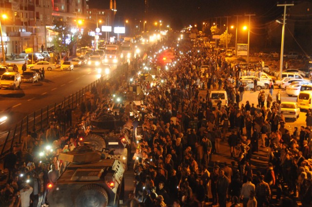 Irak Bölgesel Kürt Yönetimi tarafından destek amaçlı Kobani'ye gönderilen peşmerge grubu, Şanlıurfa'nın Viranşehir İlçesi'ne ulaştı. Öğleden sonra saat 14.00 sıralarında Mardin'in Kızıltepe İlçesi'nden geçen peşmerge konvoyu, özel harekat polislerinin zırhlı araçları eşliğinde saat 18.30'da Şanlıurfa'nın Viranşehir İlçesi'ne giriş yaptı.