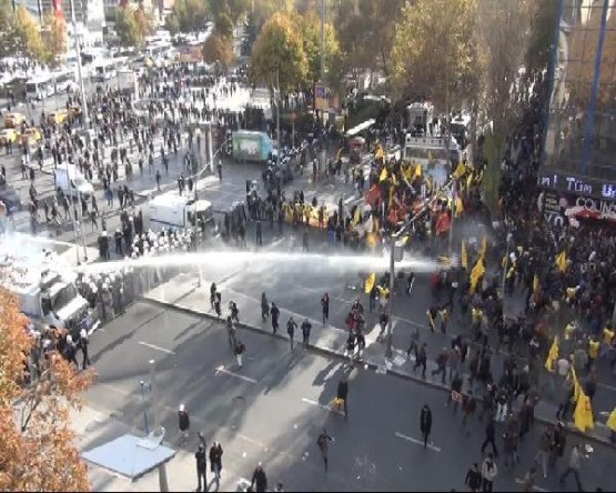 Hükümetin eğitim politikasını protesto etmek için Tandoğan Meydanı'nda toplanan ve aralarında KESK ve EĞİTİM-SEN'in bulunduğu yaklaşık 3 bin kişilik kalabalık Kızılay Meydanı'na yürüdü. Burada bir süre bekledikten sonra Milli Eğitim Bakanlığı'na yürümek isteyen kalabalığa polis izin vermedi. Polis ekipleri, kalabalığa biber gazı ve tazikli su ile müdahale etti. Kalabalıkla polis arasındaki arbede sürüyor.