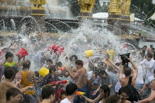 Her fırsatta buldukları suya dalan Ruslar, çılgın partiler yapıyor.Havalar ısınınca şehirlerin ortasındaki süs havuzlarında toplanan Moskovalılar ortalığı birbirine kattı.İşte o çılgın partiden manzaralar..