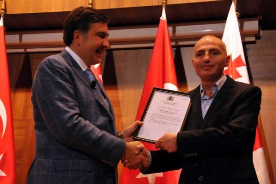 GÜRCİSTAN Devlet Başkanı Mihail Saakaşvili, Kocaeli ve Sakarya'da yaşayan Gürcü asıllı Türk vatandaşı 75 kişiye 'çifte vatandaşlık beratı' verdi. Şaakaşvili, Gölcük'te Gürcü asıllı Türk vatandaşlarıyla halay çekti.
