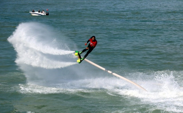SAMSUN'da Doğu Park'ta flyboard sporcusu Ali Komşusu'nun Karadeniz'de akrobatik hareketlerle yaptığı gösteri büyük beğeni topladı.