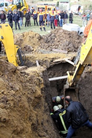 Çalışma yapan işçilerden Tuncay Başer (45), yaklaşık 3 metre kazılan toprağın içerisinde, diz altından toprağa gömüldü.