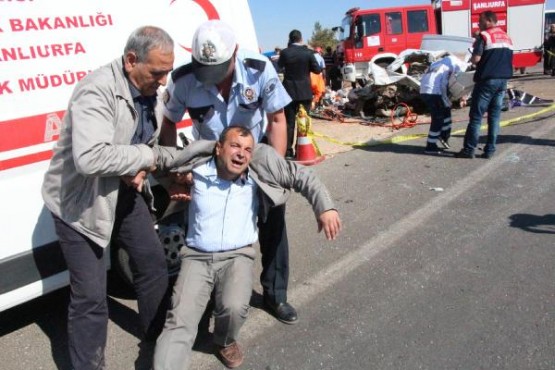 7 ÖLÜ, 10 YARALI Sağlık ekipleri yaptığı incelemede yakınlarına bayram ziyaretinde bulunmak için Suruç'a giden otomobilde bulunan sürücü Cemal Aktaşoğlu, aynı aileden Necla, Cemil, İbrahim ve Halil Kızmaz ile kimlikleri henüz belirlenemeyen 2 bebeğin yaşamlarını yitirdiğini saptadı. Otomobildeki 7 kişi de yaşamını yitirirken; minibüste bulunan 10 yolcu ise kazada yaralandı. Yaralılar, olay yerindeki ilk müdahalenin ardından Şanlıurfa'daki hastanelere götürüldü.