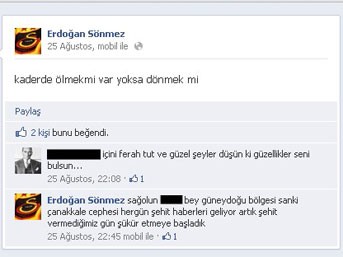 MESAJI YÜREK YAKTI Şırnak'ın Beytüşşebap ilçesinde dün gece teröristlerin düzenlediği saldırıda şehit olan Piyade Uzman Çavuş Erdoğan Sönmez'in Antalya'daki baba evine ateş düştü. Van Ercişli 25 yaşındaki Piyade Uzman Çavuş Erdoğan Sönmez'in sosyal paylaşım sitesi Facebook’ta yazdığı mesaj ise yürekleri burktu. Sosyal paylaşım sitesinde artan terör olaylarından bahseden Sönmez, “Kaderde ölmek mi var? Yoksa dönmek mi?” cümlesini dostlarıyla paylaştı. Arkadaşı tarafından cevaplanan sorusunun devamında ise şehit Sönmez, “Güneydoğu bölgesi sanki Çanakkale cephesi. Her gün şehit haberleri geliyor. Artık şehit vermediğimiz gün şükretmeye başladık” ifadelerini kullandı.