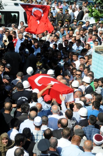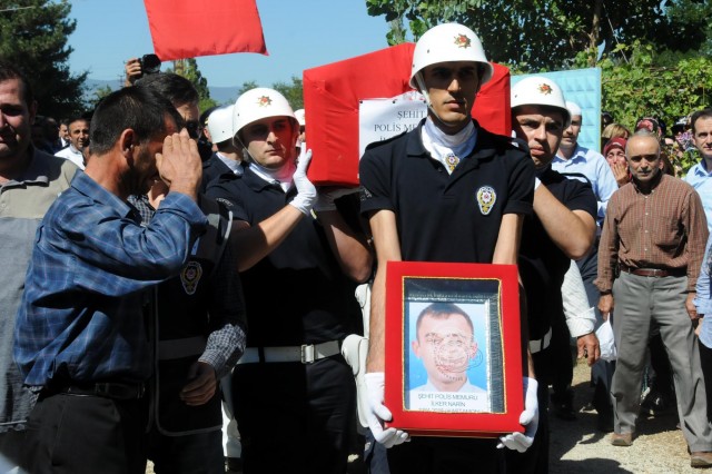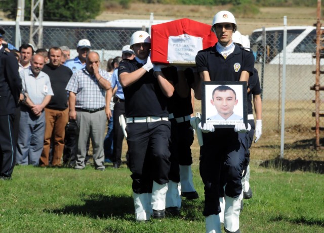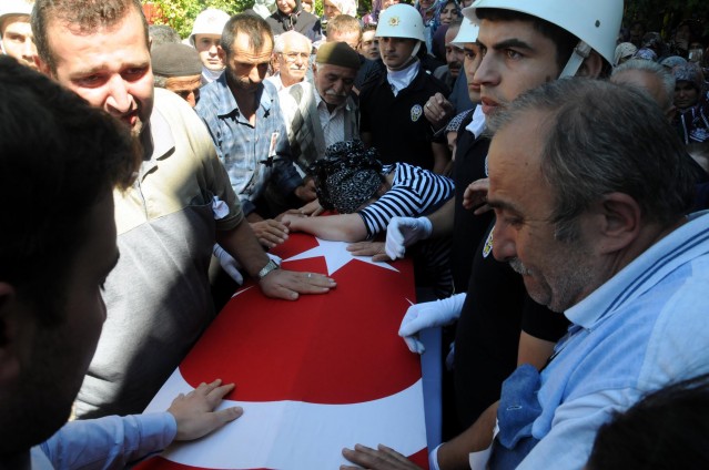 DİYARBAKIR'ın merkez Kayapınar İlçesi'nde trafik denetimi yaparken PKK'lı teröristlerin otomatik silahlarla açtığı ateşle şehit olan iki polis memurundan İlker Narin'in cenazesi, memleketi Kastamonu'nun Taşköprü İlçesi'nde gözyaşlarıyla toprağa verildi. Şehit annesi Elife Narin, "Aslan yavrum. Ben dimdik ayaktayım. Şerefsizler utansın. Ağlayıp onları sevindirmeyeceğim" dedi.
