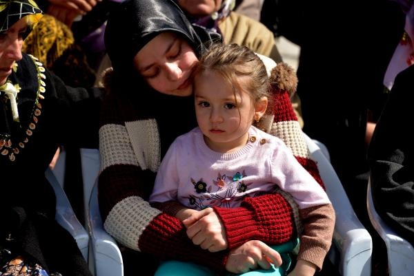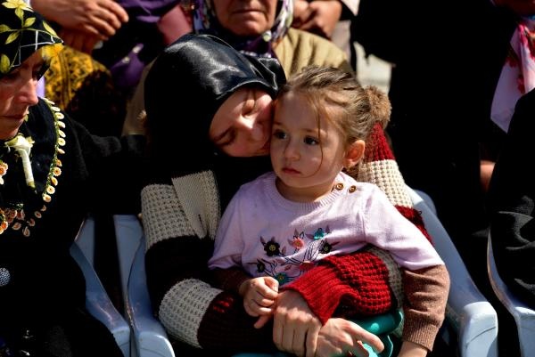 Şehit Çetin'in cenazesi, ardından dualar eşliğinde törenin yapılacağı mahalle meydanına getirildi. Şehit eşi Ayşe Çetin de kucağında kızıyla birlikte kendilerine ayrılan bölümde töreni izledi. Ayşe Çetin, eşinin tabutuna sarılarak son vedasını yaptı. Minik Fatma Sema da bir yakının kucağında sürekli babasının tabutuna baktı.
