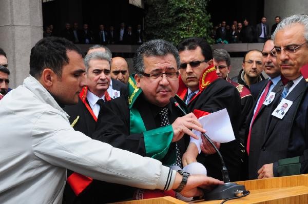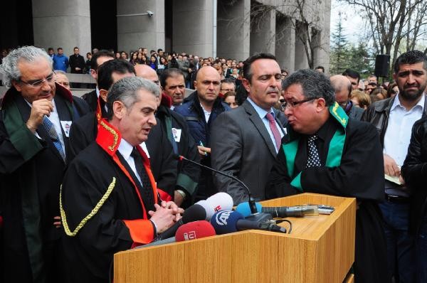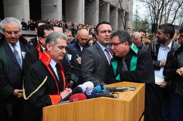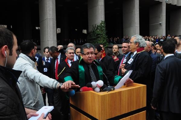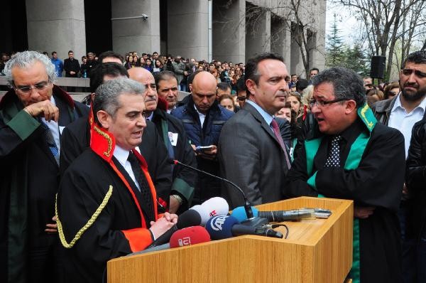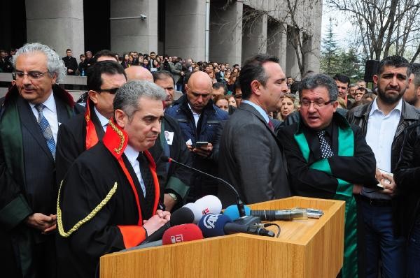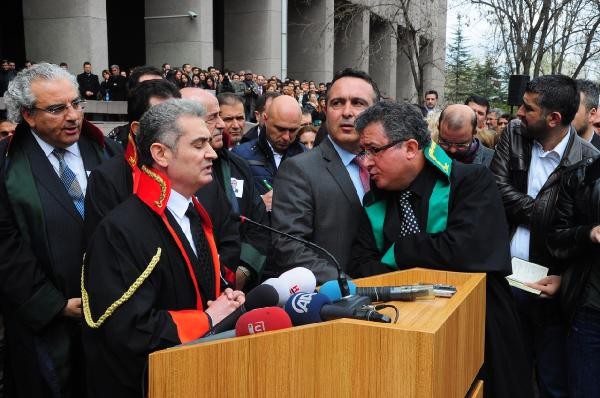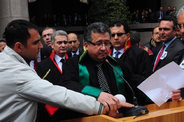 Duruma tepki gösteren Ankara Başsavcısı Harun Kodalak, kürsüde yapılan tavrın yanlış olduğunu söyledi. Yargıçlar Sendikası Başkanı Mustafa Karadağ konuşturulmak istenmediğini söyleyerek kürsüye çıktı. Bu sırada görevliler kürsü mikrofonu kapattı. Bunun üzerine kısa süreli gerginlik yaşandı.